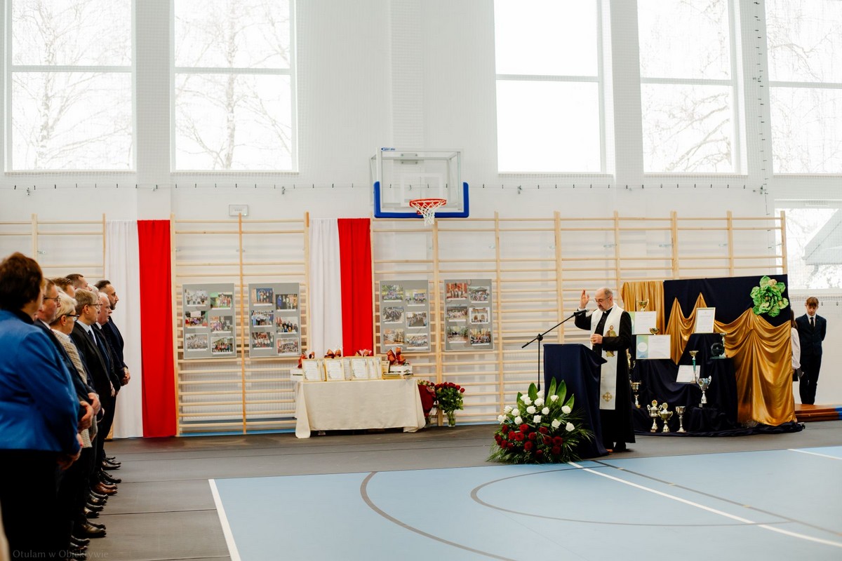 Podczas uroczystości poświęcenia sali gimnastycznej dokonał Proboszcz Parafii Łosiniec – ks. Zenon Góra.